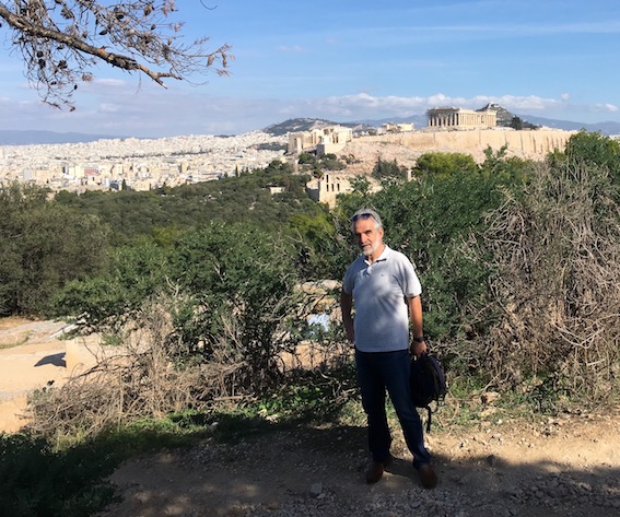 Para esta tercera crónica hay un poco de todo. Como ya adelantábamos en las crónicas 2, hemos visitado Ano Petrálona, es decir la parte alta de Petrálona, ya en las faldas de la colina de Filopapu (ver más abajo). La parte baja es Kato Petrálona. De aquí vienen los nombres de los electrodos: Cátodo (negativo) y Ánodo (positivo) ya que Kato + odos (calle o camino) indica bajada y Ano + odos= subida.