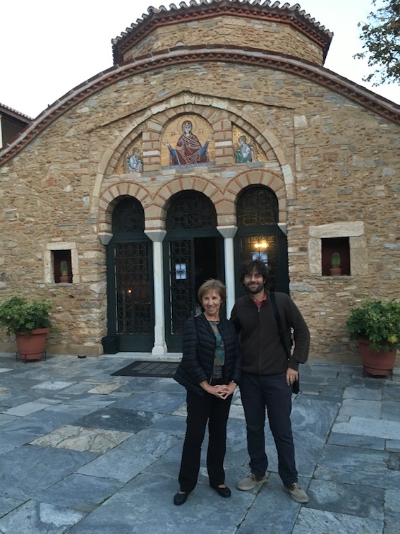 Vasilis nos llevó luego a ver un monasterio en el monte o colina Penteli (de donde se saca el famoso mármol blanco de Atenas, mármol pentélico) y a tomar un café en la cima, desde la que se ve todo Atenas iluminada.