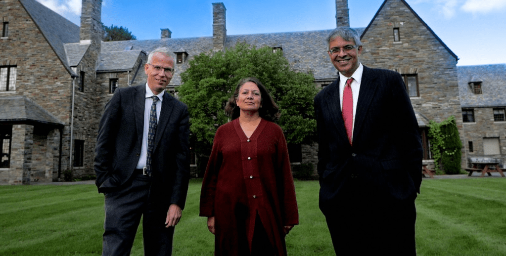 Los primeros firmantes de la declaración, de izquierda a derecha: El Dr. Martin Kulldorff, bioestadístico y epidemiólogo, catedrático de Medicina de Harvard, la Dra. Sunetra Gupta, epidemióloga, catedrática de la Universidad de Oxford, y el Dr. Jay Bhattacharya, médico epidemiólogo y experto en política sanitaria, catedrático de la Facultad de medicina de Stanford.