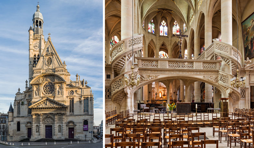 Saint Étienne du Mont: izquierda, vista exterior y, derecha, el “jubé”