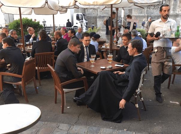 El cardenal y su séquito tomando unas birras después del oficio