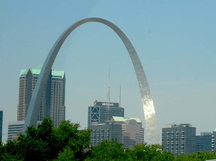 1.- El arco de San Luis, visto desde la otra orilla del Misisipi, cuando aún nos encontramos en Illinois
