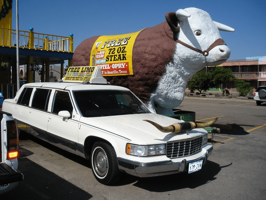 La limusina y el anuncio de “filete gratis de 72 onzas” del Big Texan