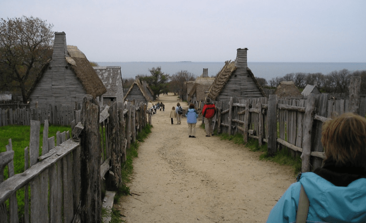 La “Plantation”, en Plymouth, Massachusetts, con sus cabañas de 1620