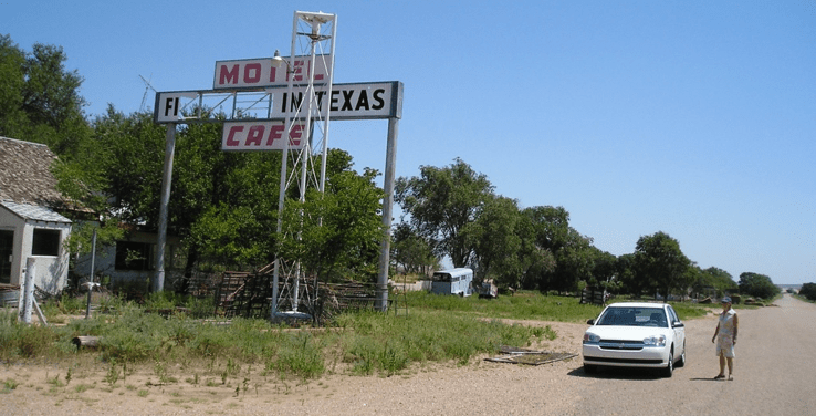 Dos vistas de la R-66 original en Texas, hoy prácticamente abandonada