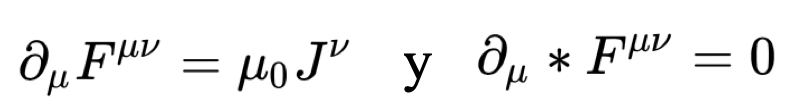 Donde F es el tensor campo electromagnético, de 16 componentes, y J incluye las cargas y corrientes en un vector de 4 componentes. La ley de Faraday está incluida en la segunda ecuación. Esta notación muestra directamente la invariancia las ecuaciones de Maxwell en cualquier sistema de referencia inercial, que es precisamente lo que postula la teoría de la relatividad.