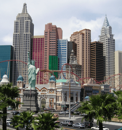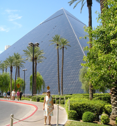 La pirámide del hotel-casino Luxor y los edificios del New York, en Las Vegas