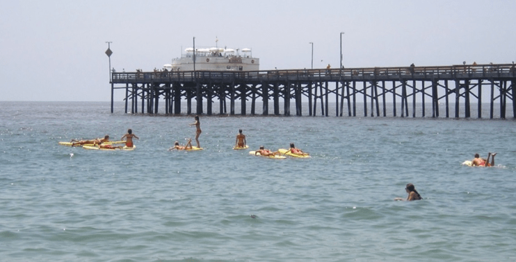 Socorristas junto al pier (muelle) de Balboa. Una escena que parece sacada de la serie “Los vigilantes de la playa”, que trataba sobre los socorristas de las playas de California