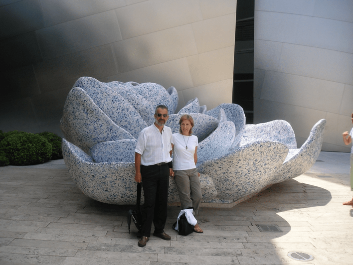 Ya establecidos en los Ángeles, visitamos el centro donde están los edificios más emblemáticos, como el Centro Musical de LA o el Walt Disney Concert Hall, tan parecido al Museo Guggenheim de Bilbao que parecen gemelos (ver las fotos). Allí nos sacamos una foto junto a una escultura de una flor de loto, muy bonita.