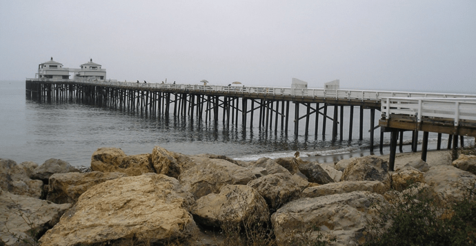 Pier de Malibú, con bruma matinal. A lo largo del día se fue despejando